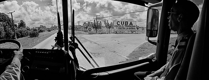 Unexpectedly this sign appeared, which means: “Cuba, Against Terrorism and Against the War”. I just had the time to turn the camera. It was indeed a fine answer, and a fortuitous one, from Che’s nation to Rex Quinn (see previous photograph). This photograph is part of my “Drive by Shootings” series.